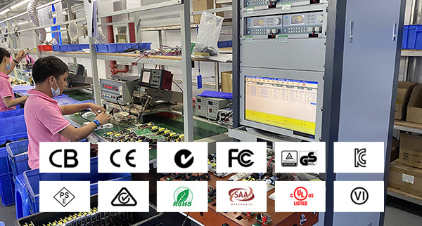 公司產(chǎn)品已通過多項國際和國內(nèi)權(quán)威認(rèn)證,包括:ISO9001質(zhì)量管理體系認(rèn)證;中國CCC認(rèn)證;歐盟CB認(rèn)證、CE認(rèn)證GS認(rèn)證、RoHS認(rèn)證;美國FCC認(rèn)證、ETL認(rèn)證、UL認(rèn)證(UL1310標(biāo)準(zhǔn)、UL60065標(biāo)準(zhǔn)、UL60950-1標(biāo)準(zhǔn));日本PSE認(rèn)證;韓國KC認(rèn)證、KCC認(rèn)證;印度BIS認(rèn)證